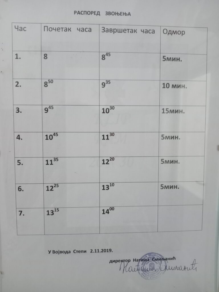 Настава се одвија у преподневној смени.